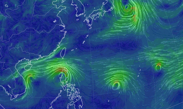 除了"天兔"之外,西北太平洋和南海上还有3个台风共存,分别是22号"银杏"、23号"桃芝"和24号"万宜"。