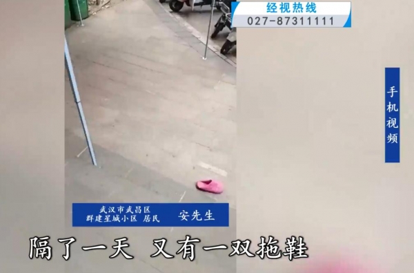 武汉市武昌区群建星城小区居民 安先生:"就在伤人后的第二天,单元门门口又有人丢了一双拖鞋下来,丢在进出楼栋入口。希望物业能够安装高空抛物监控,好找人。"