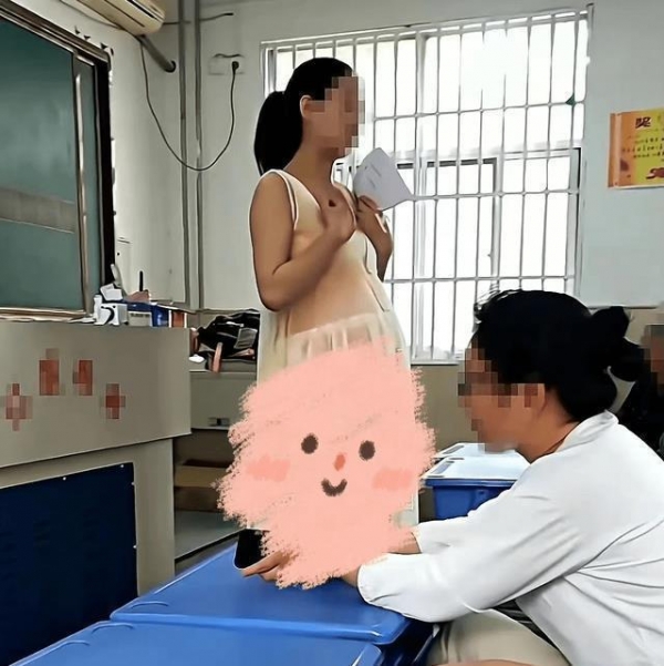 或许有家长觉得这种衣服不太得体,而且班级里也有男同学,会对他们的影响不好。当然也有人觉得这组照片是调色后的,肉眼看上去并没有那么透,老师穿着孕妇装也是为了在工作当中更舒服,并没有其他个别的想法。