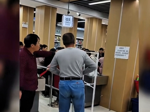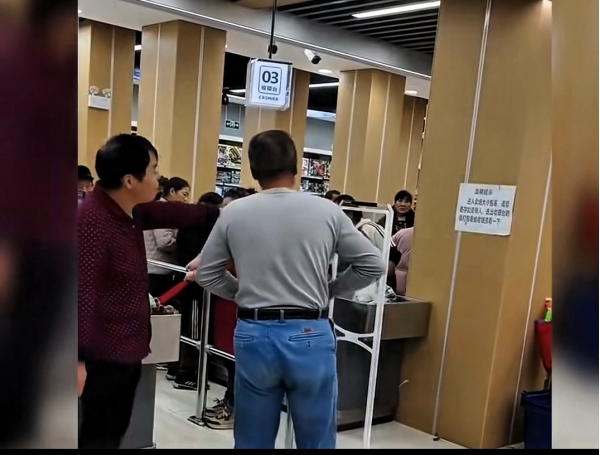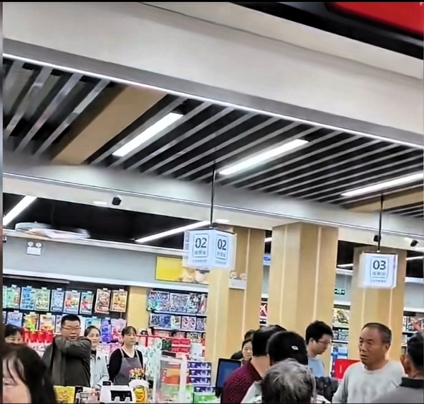 10月9日安徽巢湖市一超市内,人头攒动,顾客很多,大家都在低头购物。猛然间收银台前超市的出口处安检门的警报声响起。