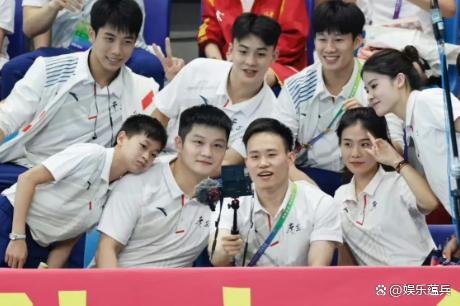 樊振东和全红蝉再次合影,我们乒乓和跳水的梦之队实在太亮眼了,姚明在拍照时站在一角,而马龙则坐在第一排C位。