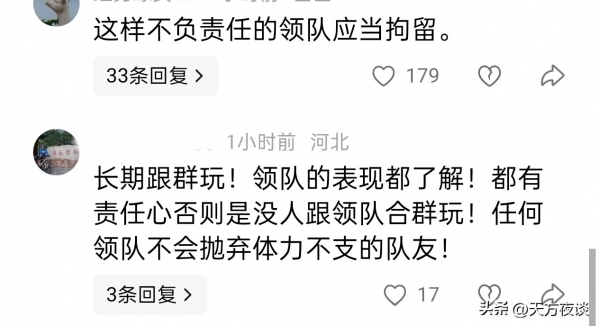 后来才知道,这支驴友团是典型"野团",领队啥资质都没有,更没尽到一点安全责任。有律师说,不管收没收钱,领队作为组织者,就得负责大家的安全,把人扔山里不管不顾,已经够得上不作为侵权!