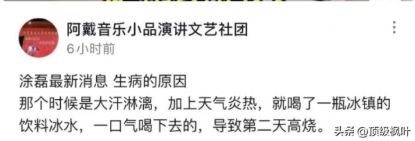 那么,究竟是什么原因导致涂磊突然生病住院呢?虽然他本人并未透露太多细节,但网络上关于病因的猜测却愈演愈烈,其中,流传最广的一种说法是:涂磊在炎炎烈日下帮助邻居搬运冰箱,出了一身大汗后,一口气喝下了一瓶冰镇饮料,结果导致第二天高烧不退,最终住进了医院,为了证实这一说法,一位自称是涂磊好友的网友,还晒出了与他视频通话的截图,并言之凿凿地表示,涂磊亲口承认了此事,虽然这一消息尚未得到官方证实,但从科学角度来看,夏季大量饮用冰饮料,确实存在一定的健康风险,尤其是在身体疲惫、大量出汗的情况下,冰冷的饮料会刺激胃肠道,导致血管收缩,影响消化功能,严重者甚至可能引发急性肠胃炎等疾病,近年来,因贪图一时凉快而导致身体不适的案例屡见不鲜,网络上也经常能看到类似的新闻报道,因此,无论网传的"冰饮料"说法是否属实,我们都要以此为戒,在夏季高温天气下,更加注意饮食健康,避免因一时疏忽而损害身体