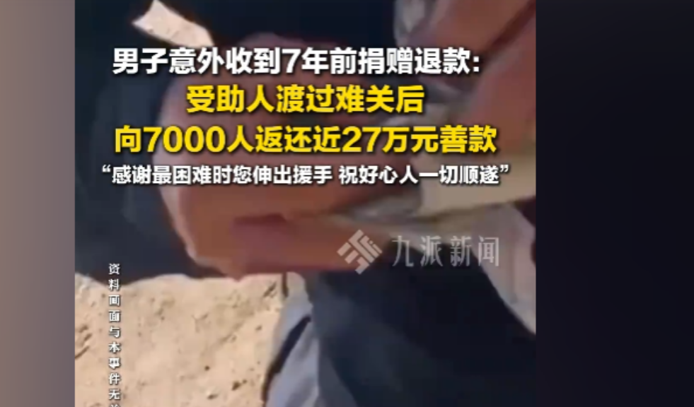 太暖心了!一男子竟然收到了7年前的捐赠退款。