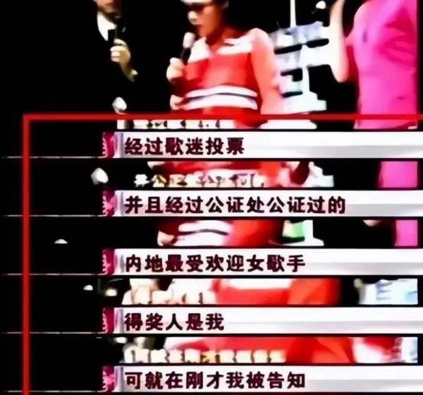真刀真枪的场面也有。2001年南京五台山体育馆的颁奖礼,群众投票她是第一,按理该拿"最受欢迎女歌手"。主办方说她没第一时间确认出席,就把奖顺延给了票数第二的那英。她最终还是赶到现场,听到结果,直接上台当面质疑:"这种奖不领也罢。"话筒一放,转身走人。那英那会儿也一脸愣着。这一幕成了内地乐坛的老新闻,后来有人把它归结为她的"倔",也有人说她顶的是那个年代娱乐圈的场面规则--到场就给,缺席就让,听起来专业,实则拗口。