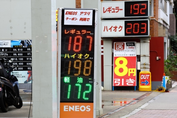 3月18日,日本东京,日本普通汽油的全国平均价格突破190日元/升,创历史新高。 IC Photo