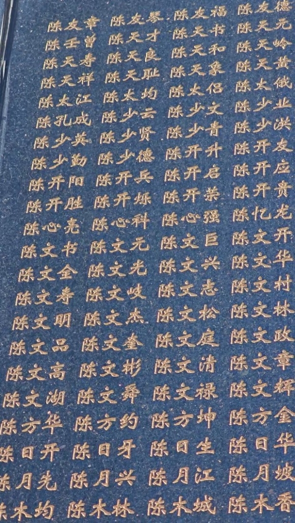 陈春富在陵园烈士英名墙上找到大伯陈文元的名字