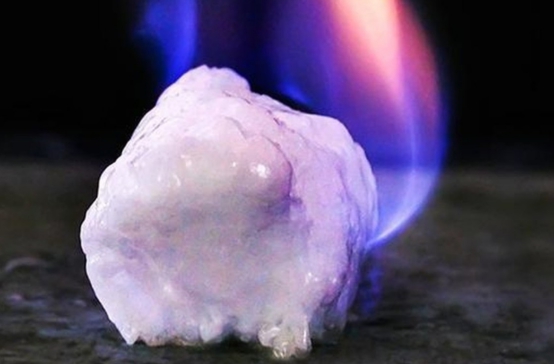 那么,究竟什么是可燃冰呢?我们都知道"水火不容",为何冰却可以被点燃呢?说起来,可燃冰是一种人类未来的新能源之一,它的学名是"天然气水合物",是一种白色的,看起来好像是冰块一样的固体燃料,不过,它的主要成分之一却是甲烷,这也是它可以被点燃的关键所在。