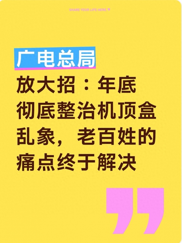 最近广电总局针对机顶盒乱象的整治政策,让不少老百姓拍手叫好--明确要求年底前彻底清理机顶盒领域的各类问题,解决大家看电视时的"糟心事"。相信很多人都有过类似经历:机顶盒开机广告关不掉、收费项目五花八门、操作复杂老人不会用、多个盒子堆着占地方……这些乱象终于要被根治了。