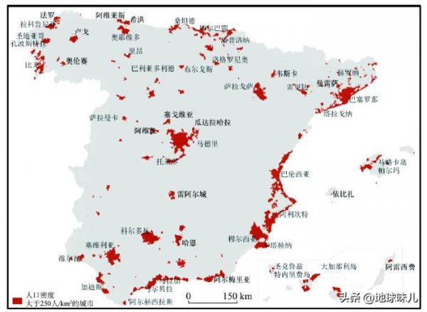 西班牙人口密度图
