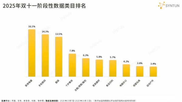 2025年双十一阶段性数据类目排名图源 | 星图数据