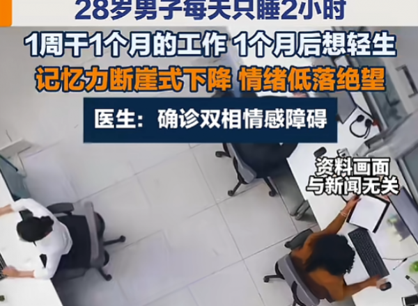 这件事发到网上后,引发了很多人的讨论,其实最可怕的不是疾病本身,而是我们总把异常当优秀,把透支当能力,把拼命当成炫耀的资本,如果身边有人突然出现连续少眠却异常亢奋,或是情绪骤降、思维迟缓的情况,别当成单纯的状态好或压力大,及时寻求专业医生的帮助,才是最聪明的选择,毕竟早发现、早干预,才能避免悲剧重演。