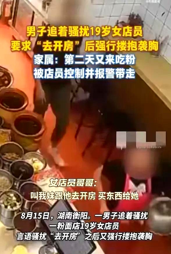 衡阳早上十点多粉店里,19岁姑娘被陌生男的抓着搂抱,第二天他还敢上门