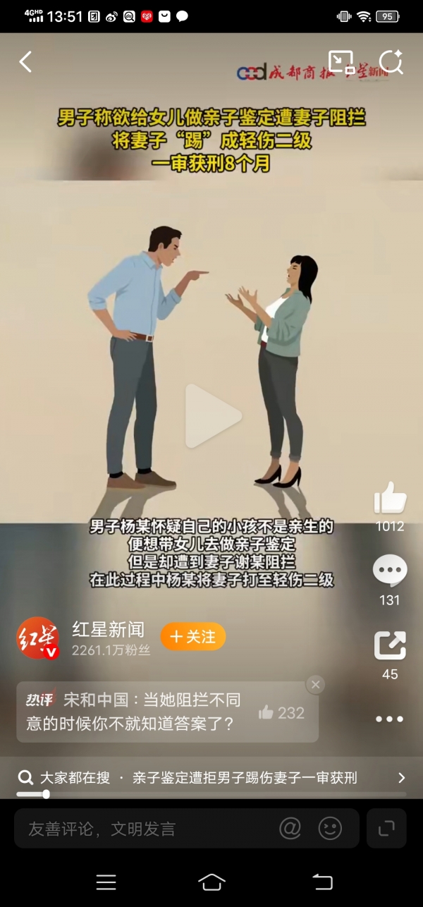 就因为妻子不肯配合亲子鉴定,丈夫直接一脚踹上去,把人踹成轻伤二级!