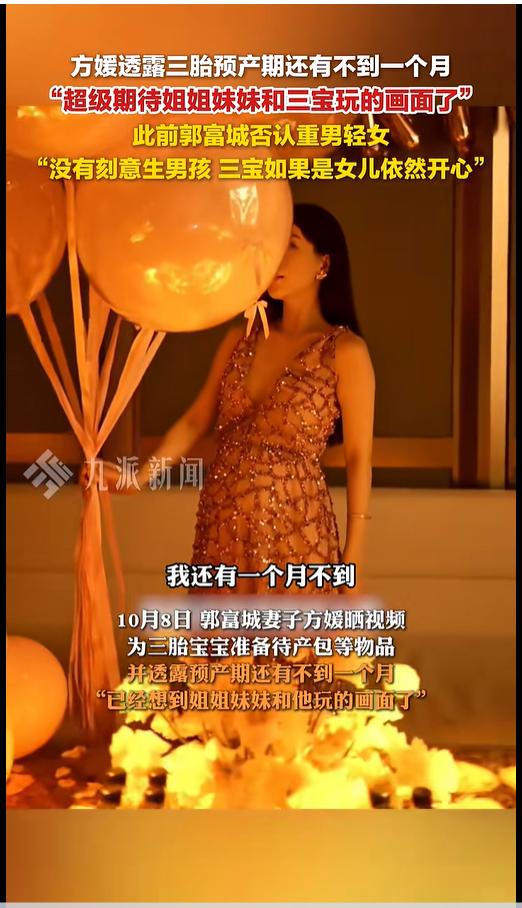 10月4日,方媛发文:"大大皮,现在已经不能坐飞机了。"评论区回复网友称快"卸货"了。郭富城在评论区回复四个表情包。