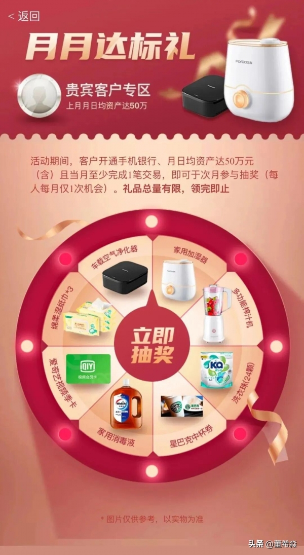 中行则主打"双重激励",1月5日至31日期间,月日均资产较上月提升1万元及以上可抽最高600万尊享积分,若资产晋级为理财、私行等等级,还能获赠最高550元微信立减金,兼顾增量资金与高净值客户留存。