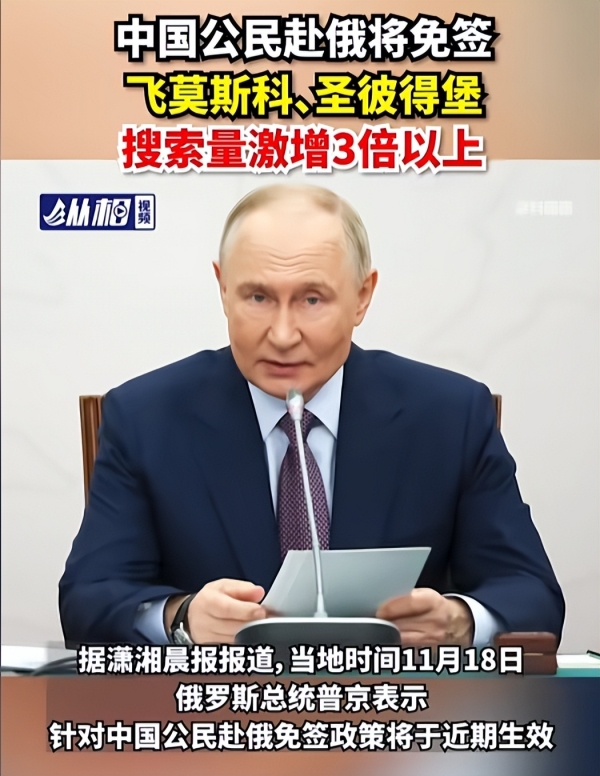 11月18日俄罗斯总统普京的宣布,俄罗斯对中国公民的对等免签政策将于近期正式生效。这一"双向奔赴"的友好举措,不仅让中国赴俄机票搜索量在24小时内暴涨数倍,更成为中俄关系迈入历史最高水平的生动注脚。