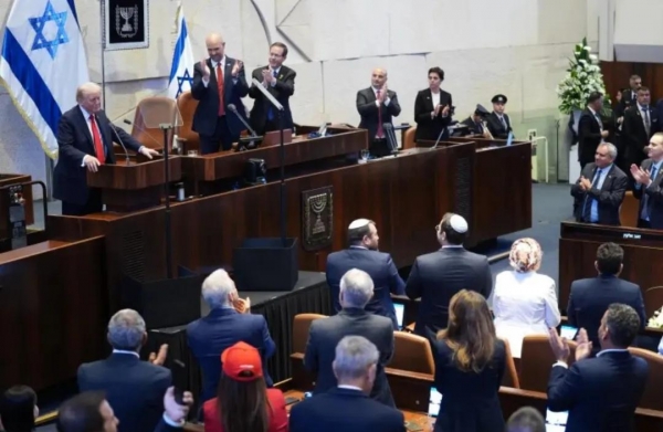 13日晚间,特朗普在以色列议会发表演讲。尽管他对内塔尼亚胡的耐心正逐渐消耗殆尽,但在主席台上,他多次被内塔尼亚胡、以色列议长奥哈纳等与会者的各种夸奖,并傲娇的接受全场多次起立鼓掌,所以在演讲中,他依然坚称"这是新中东的历史性曙光"。