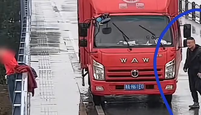 近日,曹师傅按照往常一样开着货车送货,途中看到大桥边站着一个小伙子,细看发现该小伙子站在护栏的外边。