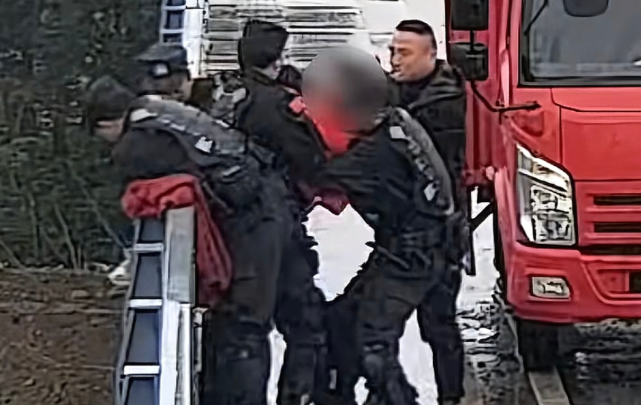 就在二人的说话的过程中,曹师傅发现小伙子的情绪并没有太激动,于是立马伸手将其抱住,准备将其解救出来。