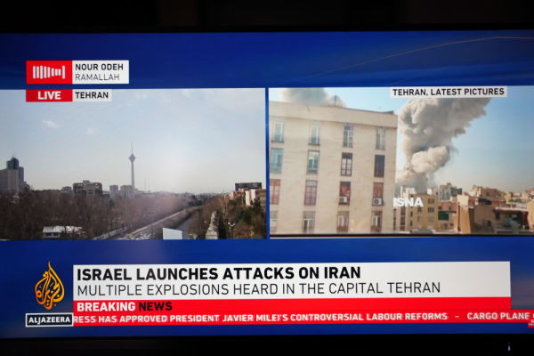 2月28日拍摄的半岛电视台电视直播画面显示的是以色列对伊朗发动袭击