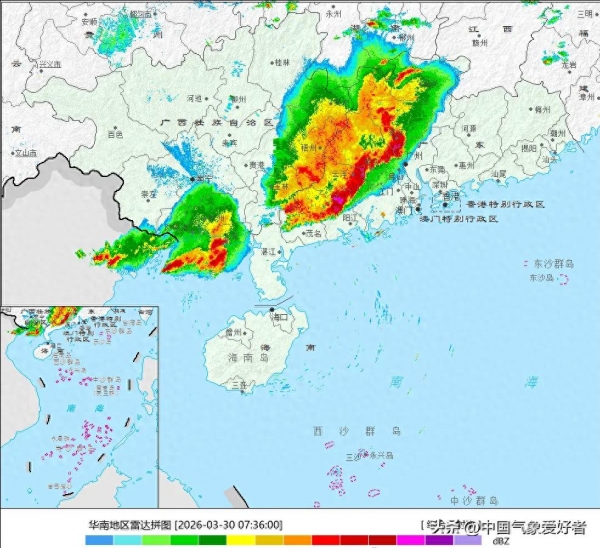 强对流的能量,主要来自地面受热、高能暖湿气流的热量输送。3月29日前,广东广西持续晴好且大片入夏,地面已经被烤热,与此同时中南半岛以及我国海南岛出现大范围高温;3月29-30日,强烈西南急流涌入。这些西南急流,既拥有大量的南海水汽,又经过中南半岛和我国海南岛的加热,非常高能。