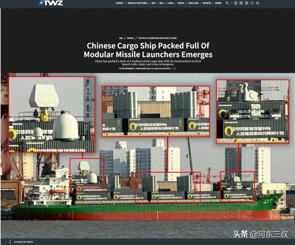 美媒《战区》栏目报道称,一艘神秘的货船出现在中国某处码头上,满载集装箱感觉和普通货船差不多。但认真观察后可以发现,集装箱上部署了大量武器装备,包括导弹发射箱、雷达,以及近防炮等。货船瞬间变武库舰,而且还是重装水面舰艇,火力密度和威力甚至远超普通驱护舰。