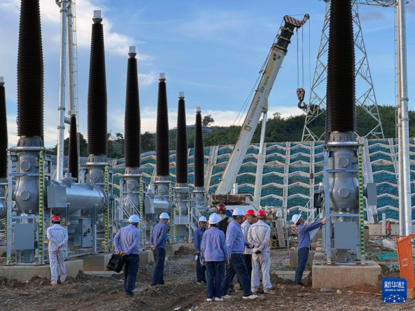 在老挝乌多姆赛省拍摄的1000兆瓦光伏工程的升压站建设现场。 资料图:新华社