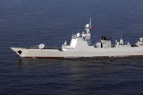 中国人民解放军海军052D型驱逐舰乌鲁木齐舰,在完成数小时机动后,强势突破台军所谓防线。