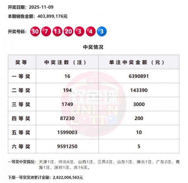 下期一等奖奖池累计金额:2,822,006,563元
