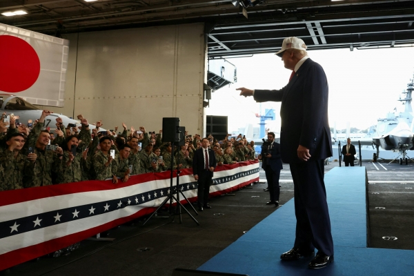 特朗普在航母上演讲