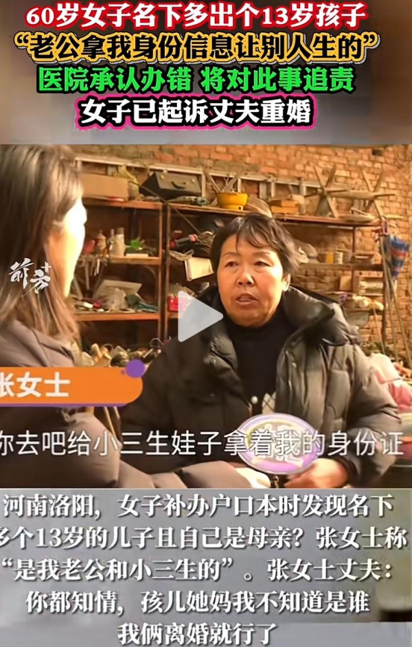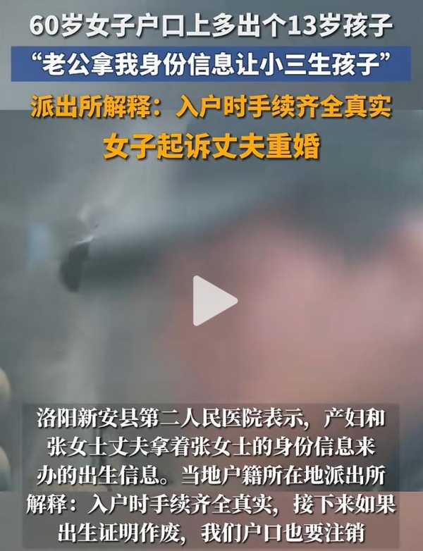 洛阳60岁的张女士去派出所补办户口本,工作人员打开电脑一查:您名下还有个13岁的儿子。