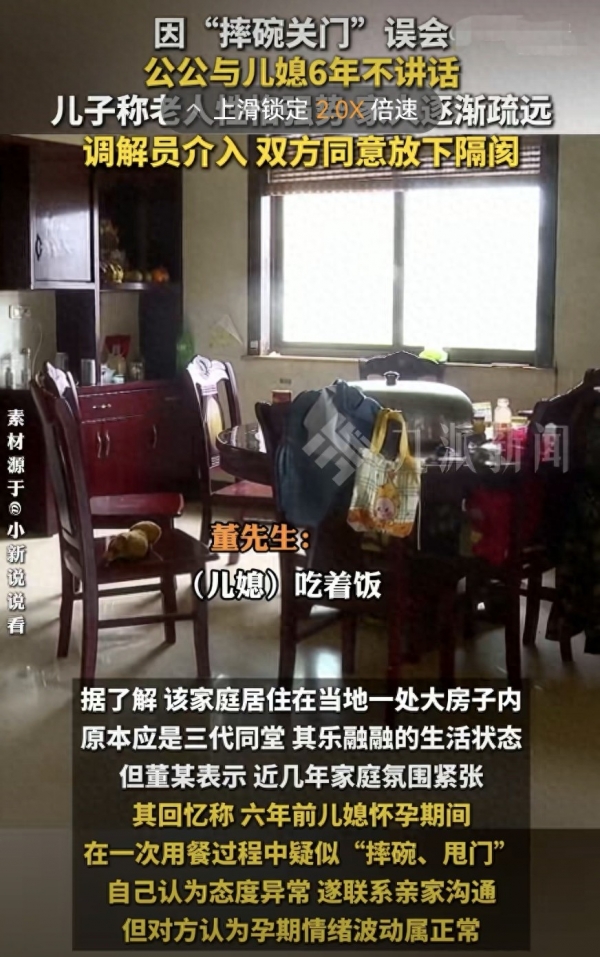 6年后,儿媳终于说出了当时的情况:她根本不是故意摔碗,只是碗放到瓷砖上声音大了点,关门的时候又刚好有风,听着像甩门。她否认自己当时情绪失控。董大爷的儿子也证实,那件事本质上就是个误会,妻子怀孕身体不舒服,有些反应很正常,不是有意的。