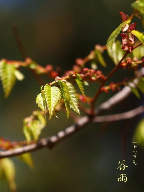 按照传统物候说法,谷雨有三候:一候萍始生,池塘里开始长出浮萍;二候鸣鸠拂羽,斑鸠会梳理羽毛;三候戴胜降桑,戴胜鸟落在桑树上。对应的花信也很有讲究,牡丹、荼蘼、楝花依次开放,楝花更是二十四番花信风的最后一花,开完也就意味着春天即将收尾。
