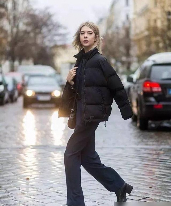 我见过太多人,短羽绒配阔腿裤,却穿出了"上半身圆滚滚,下半身空荡荡"的翻车效果。