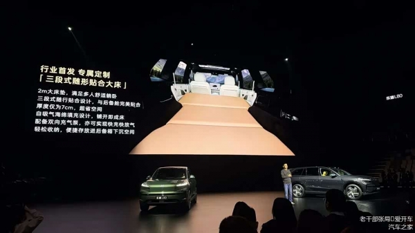 基于可观的尺寸,乐道L80实现了多达1200L的后备箱空间和2600L的第二排座椅放倒后的拓展空间,且一排椅背后的纵深达到2.2米,设置"大床"就更为充裕,能基本和正常家庭的床长度相近,避免了身高一米6能睡一米7卡脚。