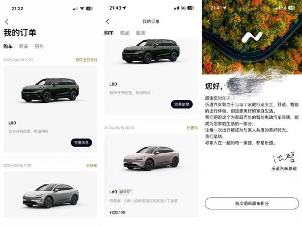 预售后的反响普遍认为价格有成为爆款的可能,笔者所在乐道车主群也有相当多乐道L60的车主晒订单进行了复购。在第二天的群访里,李斌和沈斐更透露乐道L80首日预售订单数量超L90去年同期。