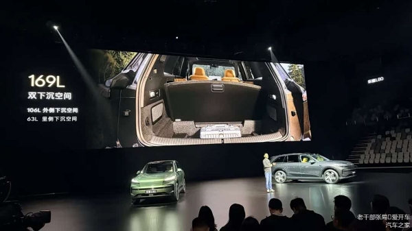 后备箱下沉空间也进行了两段式设定,是在乐道L90的一个"深坑"基础上,增加了一个靠前的矮坑。可以选择矮坑放床垫/枕头/桌椅等拓展收纳,深坑放行李箱或其他杂物,也可以选择深坑放"乐道大冰柜"。