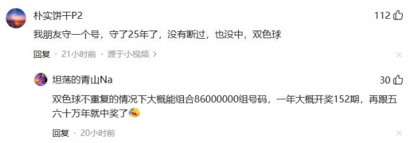 我朋友守一个号,守了25年了,没有断过,也没中,双色球