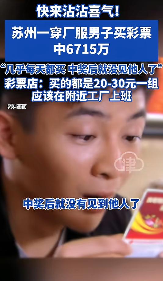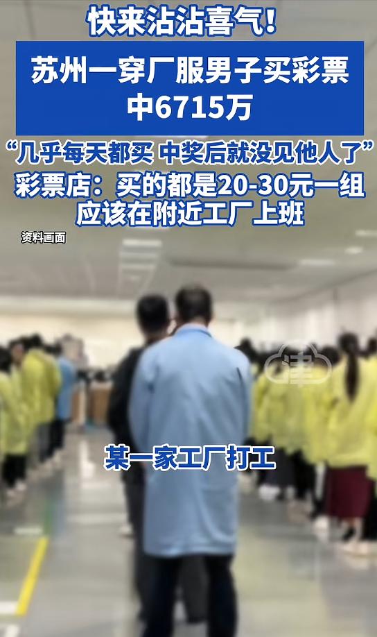 近日,苏州一位穿着朴素厂服的中年男子,以20元的小额投入,竟然直接斩获了6715万元的巨额彩票奖金,瞬间完成了从普通打工仔到超级富翁的华丽转身!这消息一出,大家纷纷涌到彩票店门口,希望能沾沾"幸运神"的喜气。