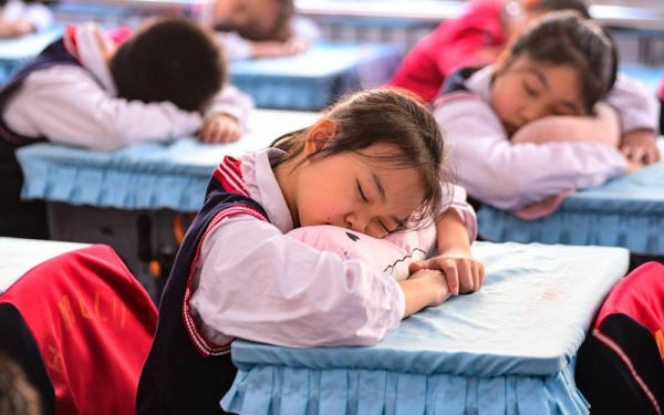 中小学生长期面临着课业负担重、作业多,每天很晚睡又很早起床,睡眠时长往往不足8小时。