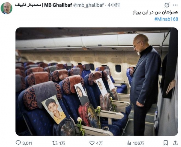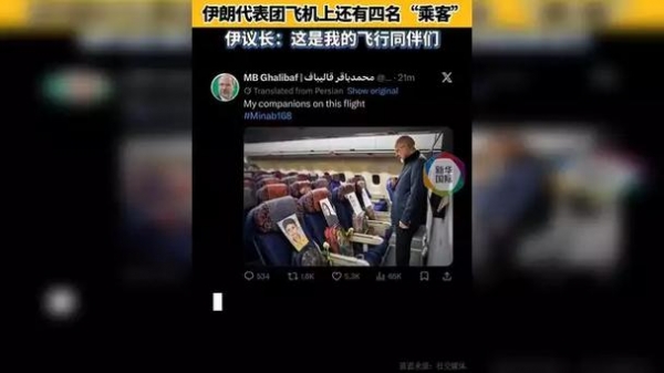 伊朗首席谈判代表、伊朗议会议长的卡利巴夫当天在自己的社交媒体账号发了一张让人动容的照片,配文"我的飞行同伴们"。