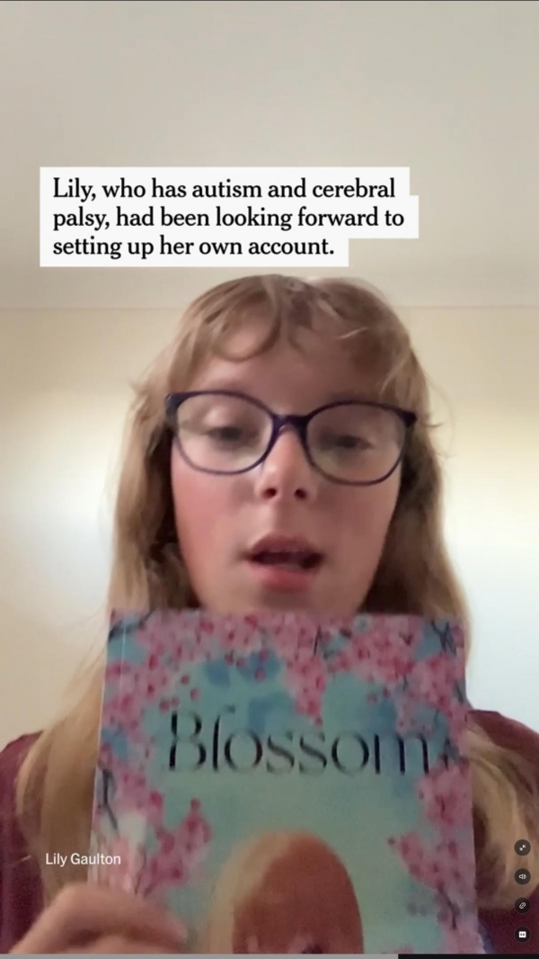 还有12岁的Lily Gaulton,她患有自闭症和脑瘫,不过应该不是影响智力那种。