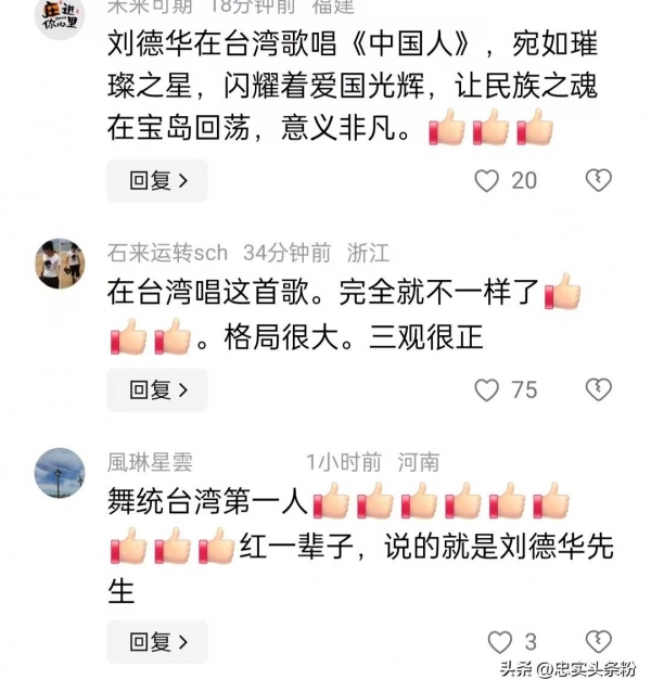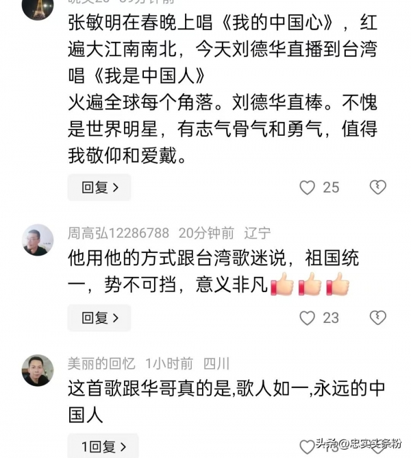 广大网友,无论是大陆的,还是台湾的,也对刘德华演唱《中国人》表示了积极肯定。