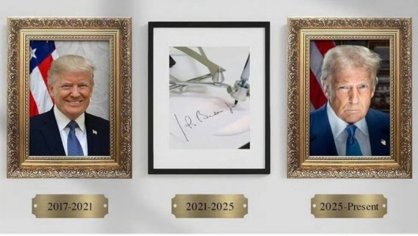 据报道:9月24日,白宫新"总统名人墙"揭幕,拜登的肖像照片被自动签字笔图片代替。特朗普此举意在讽刺拜登"神志不清",暗示拜登政府部分决策非拜登本人作出。