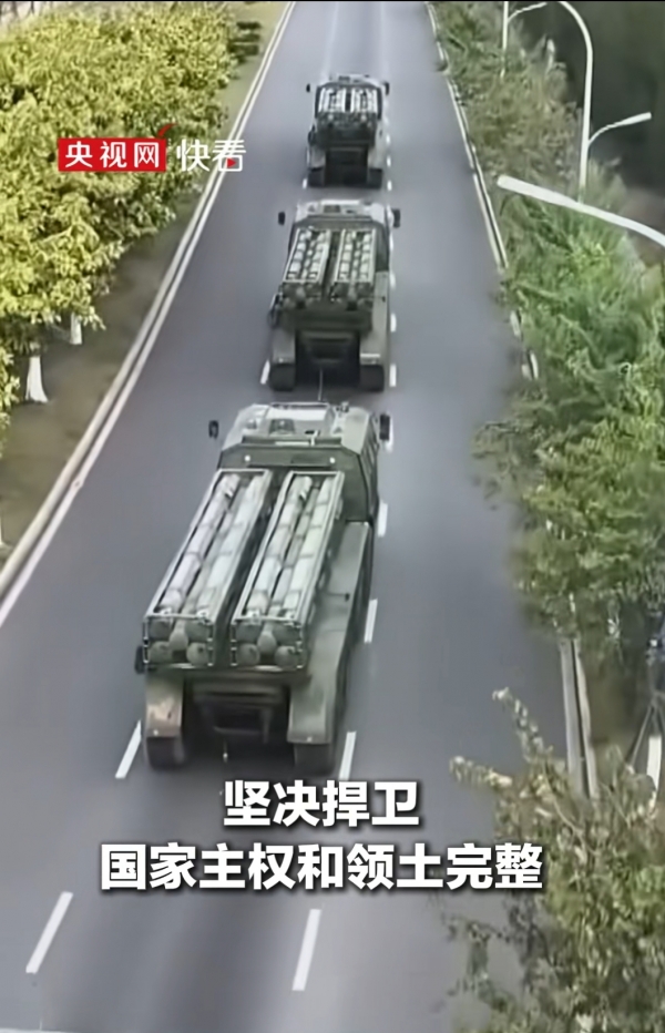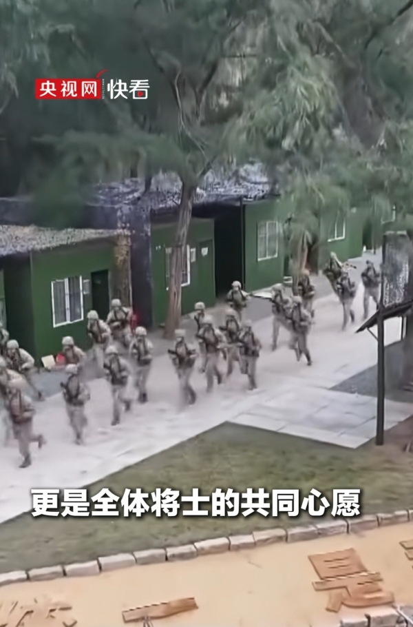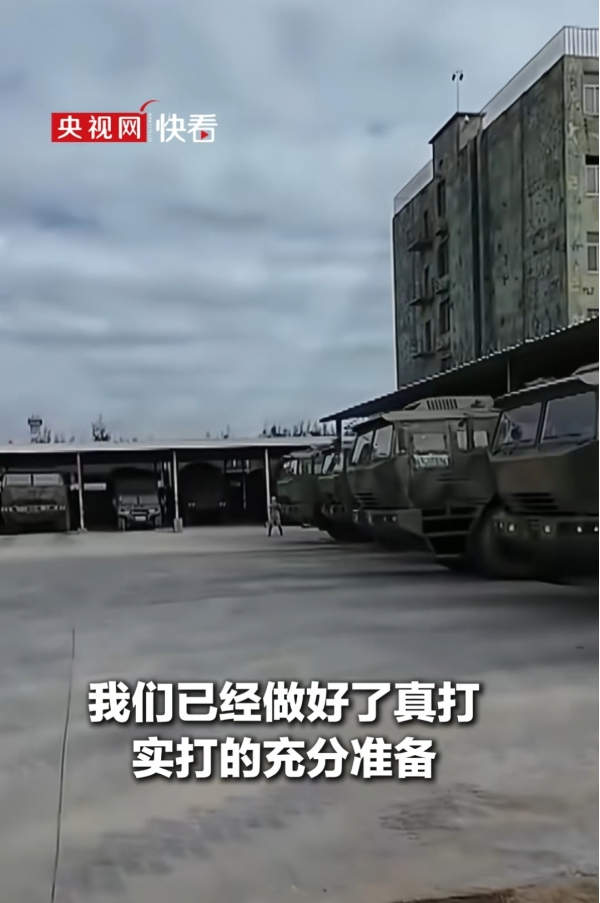战士们穿着迷彩服,拿着枪,眼神里全是坚定。还有一大群将士们从营房里冲出来,那股子劲儿,就是告诉大家"收复台湾,是全体将士的共同心愿"。再看看那些军用车辆,一辆辆霸气侧漏,明明白白地说"我们已经做好了真打实打的充分准备"。
