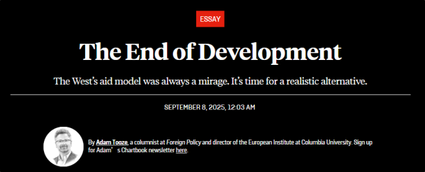 《外交政策》于9月8日刊载了亚当·图兹的文章《发展的终结》