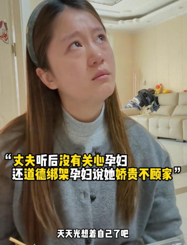 自己挺个肚子还要收拾家里的卫生,丈夫一点都不知道帮自己分担家务,也不主动干活。