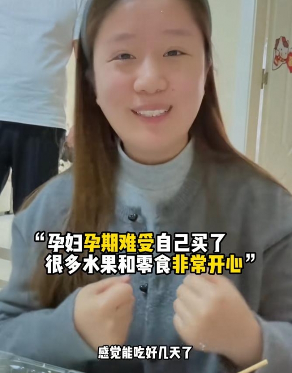 谷女士怀孕初期一直害喜孕反,吃不进饭,于是花两百去买了很多水果和零食,想缓解一下自己难受的感觉,也让自己心情更好一些。