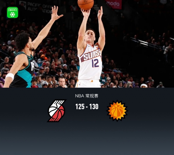 第四节,开节开拓者夏普、格兰特相继得分,太阳吉莱斯皮连攻带传回应,节中太阳吉莱斯皮、邓恩一波三分雨领先至12分,开拓者罗威、夏普冲击内线止血,但太阳依旧回应保持两位数领先,比赛来到最后2分多钟开拓者霍勒迪、格兰特联手迅速追至4分,太阳阿伦三分稳住局面,紧跟开拓者霍勒迪失误,太阳马威暴扣再度领先9分,开拓者格兰特神奇打板三分延续悬念,紧跟太阳奥尼尔两罚不中,开拓者西索科冲框追至4分,太阳再度失误,但开拓者格兰特强投三分不中,失去悬念,全场结束,开拓者125-130不敌太阳。